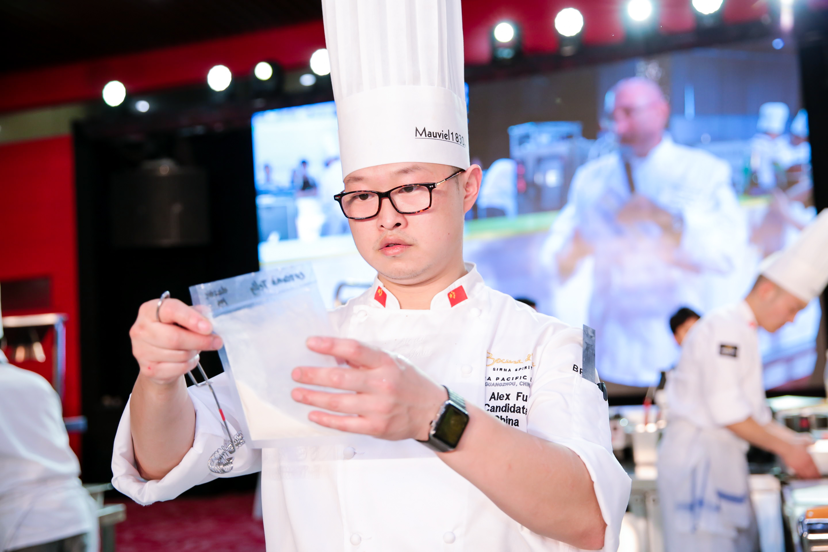 比賽首日壓軸出戰(zhàn)是代表中國(guó)的主廚傅朱偉(Alex Fu)。在今年2月的博古斯中國(guó)區(qū)選拔賽中,傅朱偉從6位入圍國(guó)家決賽的候選人中脫穎,摘得桂冠。為了備戰(zhàn)本次亞太區(qū)選拔賽,他從兩個(gè)月前就開始了全方位的訓(xùn)練。在比賽中,他運(yùn)用小牛肉、鵝肝、雞肉和菠菜等制作餐盤(Plate)菜肴,托盤(Platter)菜肴則使用三文魚、辣根和海草等食材。