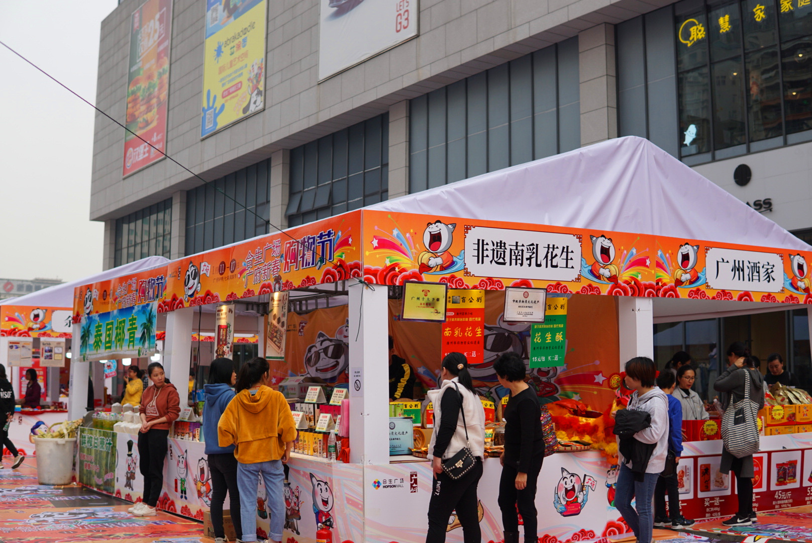 購物節(jié)現(xiàn)場展銷糕點(diǎn)、餅食類、臘味類和海味干貨等過百款廣式傳統(tǒng)年貨,不僅有輕工集團(tuán)、廣州酒家等廣州老字號(hào)企業(yè),多家本土“非遺”企業(yè),如天程銅藝、余同號(hào)等紛紛出動(dòng)銷售廣府傳統(tǒng)手工藝產(chǎn)品。為迎合年輕人市場,活動(dòng)期間主辦方以茨菇造型的廣府吉祥物“廣仔”為主題布置,還舉辦“廣仔”IP秀、“廣仔”巡游和七彩風(fēng)車節(jié)等活動(dòng)。